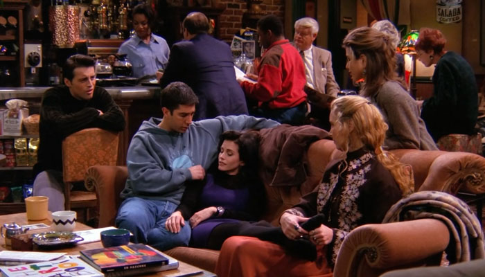 ここのNetflixとHuluは分かりますが、HBOってなんでしょう? これはアメリカのケーブルテレビ局で、お金を払わないと見られないTV番組なんです。貧乏でHBOを見られないというのは、海外ドラマではお約束パターン。下記シーンは壁越しに聞こえるって・・・(笑)